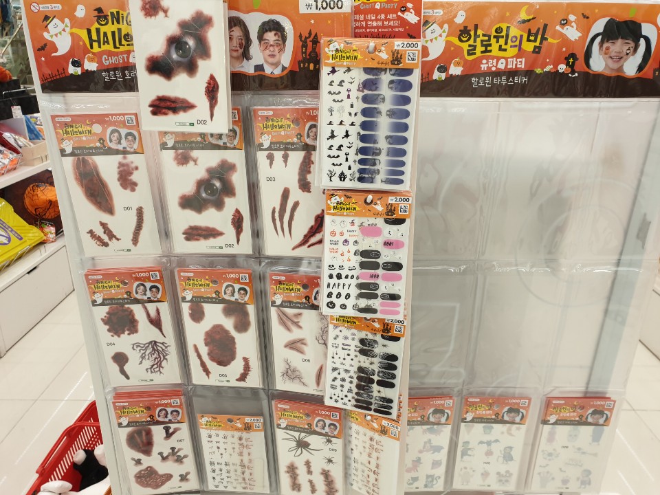 간단하게 할로윈데이 소품으로 호박 바구니도 저렴하게 판매하고 있었고요, 저는 할로윈데이 소품 중 네일이랑 상처 스티커가 할로윈데이 분위기랑도 잘 맞을 것 같아 하나 구매해봤어요.